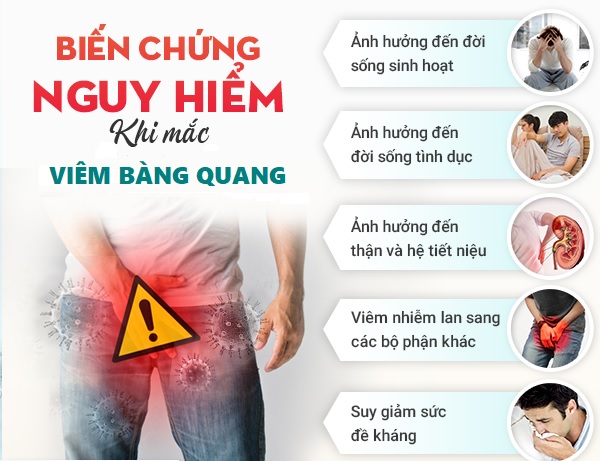 Viêm bàng quang không chỉ gây khó chịu mà còn có thể dẫn đến các biến chứng nguy hiểm nếu không được chữa trị kịp thời. Bao gồm: