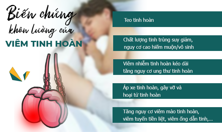 ↔Viêm tinh hoàn do nhiễm khuẩn: Nếu nam giới bị viêm tinh hoàn do nhiễm khuẩn, một số trường hợp không điều trị nhưng các triệu chứng của bệnh cũng tự thuyên giảm. Tuy nhiên, sau đó bệnh sẽ nhanh chóng tái phát lại và lần sau thường bị viêm nặng hơn lần trước và lan sang 2 bên tinh hoàn, hóa mủ và làm hỏng toàn bộ tinh hoàn, dẫn đến nguy cơ vô sinh hiếm muộn.