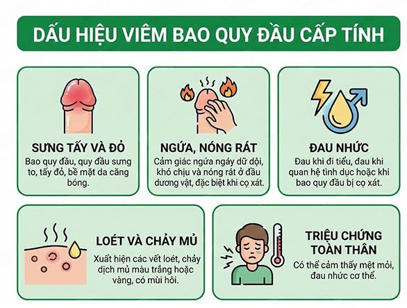 IconTriệu chứng viêm bao quy đầu cấp tính